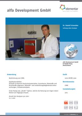 In diesem Monat möchten wir Dr. Rudolf Schneider von der alfa Development GmbH in Poing vorstellen. Herr Dr. Schmidt nutzt als einer der Ersten den vario MICRO cube mit unserer „runAr“-Option, welche den Betrieb mit Argon als Trägergas anstelle von Helium erlaubt.