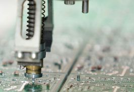 Rasend schnell muss es auch bei der anschließenden Qualitätskontrolle gehen, denn jede einzelne Leiterplatte wird gründlich geprüft. Die elektrische Leitfähigkeit der Anschlüsse gibt Auskunft über die korrekte Funktion der Schaltkreise. Um sie zu vermessen, werden feinste Nadeln an einzelne – jeweils zwei oder mehr – Anschlüsse geführt und unter Spannung gesetzt. Das wird bei jedem Teil solange wiederholt, bis alle Leitbahnen durchgecheckt sind. Allerdings darf man sich diesen Ablauf nicht als gemächlichen Prüfvorgang vorstellen, denn die Platten werden oft in Millionenstückzahlen produziert. Die vollautomatischen Testmaschinen müssen also ebenfalls einen großen Durchsatz ermöglichen. Die Bewegung der Nadeln etwa ist so schnell, dass man sie nur in Superzeitlupe verfolgen kann.
