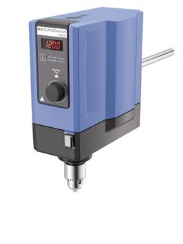 Leistungsstarkes Rührwerk für hochviskose Medien und intensives Mischen von Mengen bis 150 l (H2O). Eine mikroprozessorgesteuerte Regelung hält die zwischen 0/6 - 2.000 min-1 (zwei Drehzahlbereiche) eingestellte Drehzahl konstant. Ein elektronischer Sicherheitskreis garantiert das Abschalten des Gerätes im Fehlerfall oder bei Überlastung. Soll- und Istdrehzahl werden kontinuierlich angeglichen. So bleibt die Geschwindigkeit auch dann konstant, wenn sich die Viskosität des Mediums ändert.