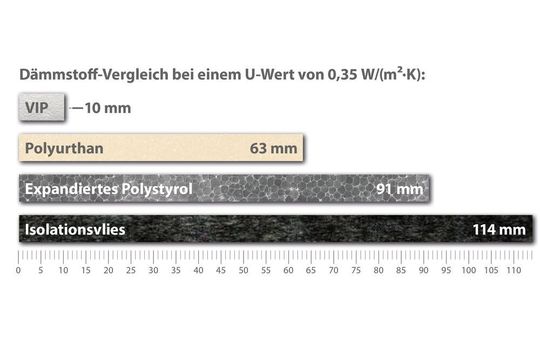 So simpel die Dämmstoffplatten auch aussehen mögen – in ihnen steckt neben hochentwickelter Technologie geballte Physik: Energie in Form von Wärme fließt grundsätzlich immer entlang eines Temperaturgefälles: von warm (energiereich) nach kalt (energiearm). Der so entstehende Wärmefluss wird durch die sogenannte Stoffkonstante, den Lambda-Wert oder auch Wärmeleitfähigkeit genannt, gesteuert. Je niedriger dieser Wert ist, umso besser ist die Wärmedämmperformance eines Materials, d. h. umso niedriger ist auch der Wärmefluss. Vakuumdämmung minimiert diesen Wärmefluss maximal. Dabei zeichnen sie sich zudem durch außerordentliche Langlebigkeit aus.
