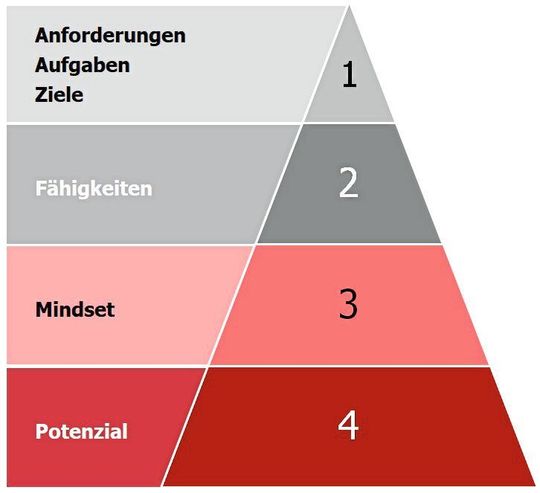 Führung ist ein Beziehungsgeschehen. Nach wie vor wird sehr viel Energie verbraucht, um Reibungsverluste, die aus gestörten Beziehungen entstehen, zu kompensieren. Um die Beziehung zu Mitarbeitenden so zu gestalten, dass daraus Leistungsorientierung und Motivation entstehen, sollte Führen ohne Macht auf vier Ebenen ansetzen: Die erste Ebene sind die gegebenen Anforderungen, Aufgaben und Ziele. Die zu entfaltenden Fähigkeiten müssen zu diesen Anforderungen passen. Ebenso muss die Haltung (das Mindset) auf Leistung und Kooperation ausgerichtet sein. Das Fundament bildet das gegebene Potenzial.