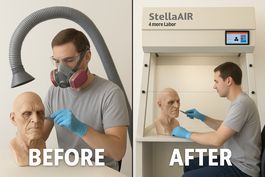 Lösungsmitteldämpfe, Klebstoffe und Aerosole gehören zum Alltag professioneller Maskenbildner:innen. Mit dem Filterabzug StellaAir® bietet 4 more Labor GmbH® eine speziell für Maskenräume entwickelte Lösung, die belastende Stoffe direkt an der Quelle erfasst – und damit den Arbeitsschutz auf ein neues Niveau hebt.
